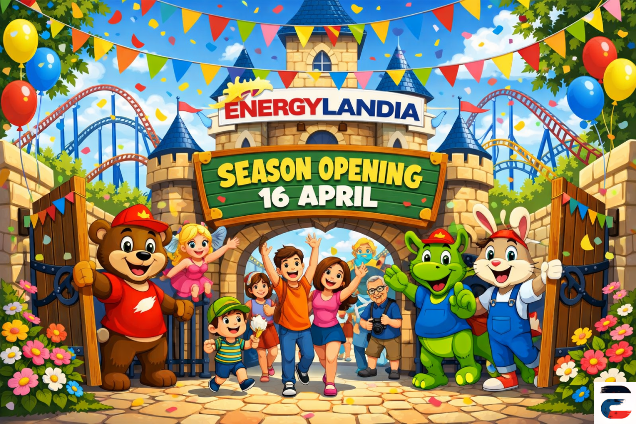 Boven de ingang hing een gigantisch bord: Season Opening 16 April. Alsof het park zelf zei: kom binnen, dit is jouw dag!